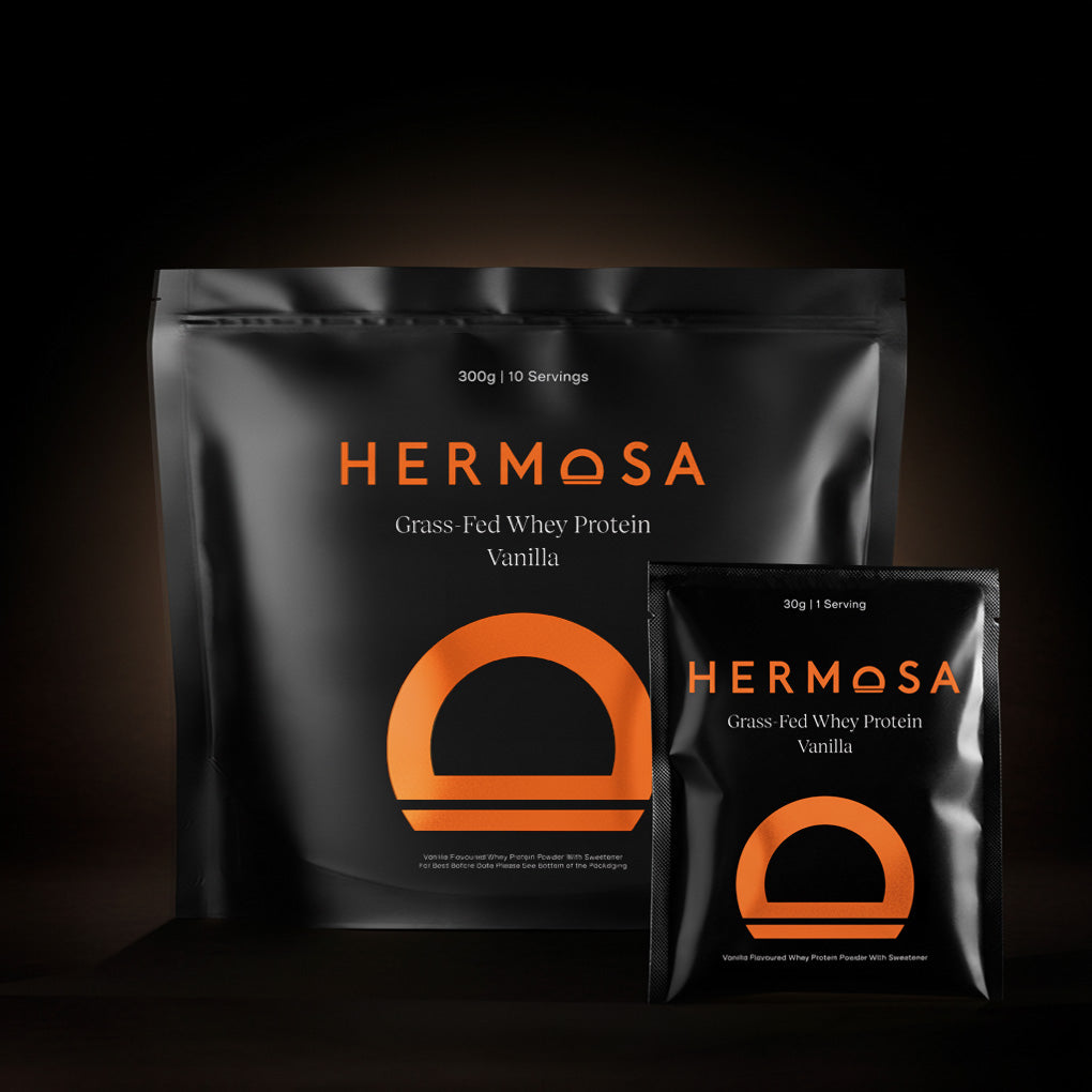 Stash them in your pocket, drop them into your gym bag; our On The Go whey protein sachets are your go-to exercise buddy that you can take everywhere. Wherever you are and whatever you’re doing, refuel On The Go HERMOSA style. Every single-serve protein sachet comes loaded with our award-winning grass-fed whey that’s soy-free, gluten-free, non-GMO, vegetarian, suitable for halal and easy mixing for a smooth, non-grainy shake that tastes incredible.